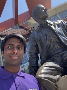 Ritvik is a rising sophomore at Purdue University, studying Aeronautical and Astronautical Engineering, and currently interning with IAC for the summer. He has staffed the 2025 IAC Middle and Elementary School National Championships and the 2024 International Geography Championships in Vienna, and he’s excited to return to internationals this year. In high school, Ritvik led Ridgewood High School’s Quiz Bowl and History Bowl teams for three years, serving as Club President his senior year. He remains active in the quiz bowl community by staffing and tournament-directing events, as well as writing and packetizing questions for the Long Island Quiz Bowl Alliance. Outside of academics, Ritvik enjoys watching and attending college football and basketball games, going on side quests, playing racket sports, and exploring his passion for planes, trains, and cars. He’s also an avid user of Duolingo and loves traveling. Ritvik is eager to use his French skills in Paris and looks forward to connecting with people at the Olympiad. Attached is a picture of him with the Neil Armstrong Statue at Purdue.